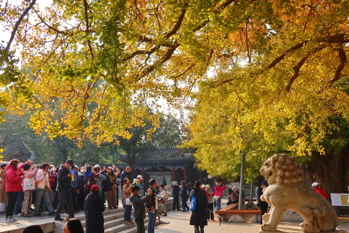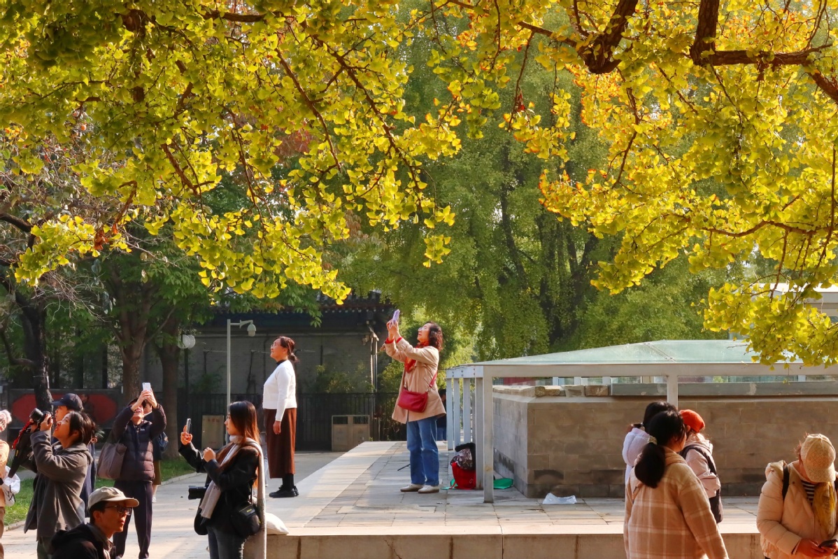 中国日报10月29日电(记者 姜东)2025年10月28日,游客在北京石刻艺术博物馆(五塔寺)游览。近日,北京石刻艺术博物馆(五塔寺)内的银杏泛黄,石刻文物掩映在金叶中,吸引不少游客前来观赏。