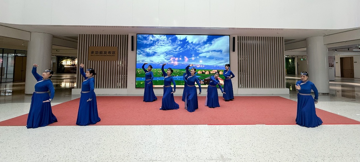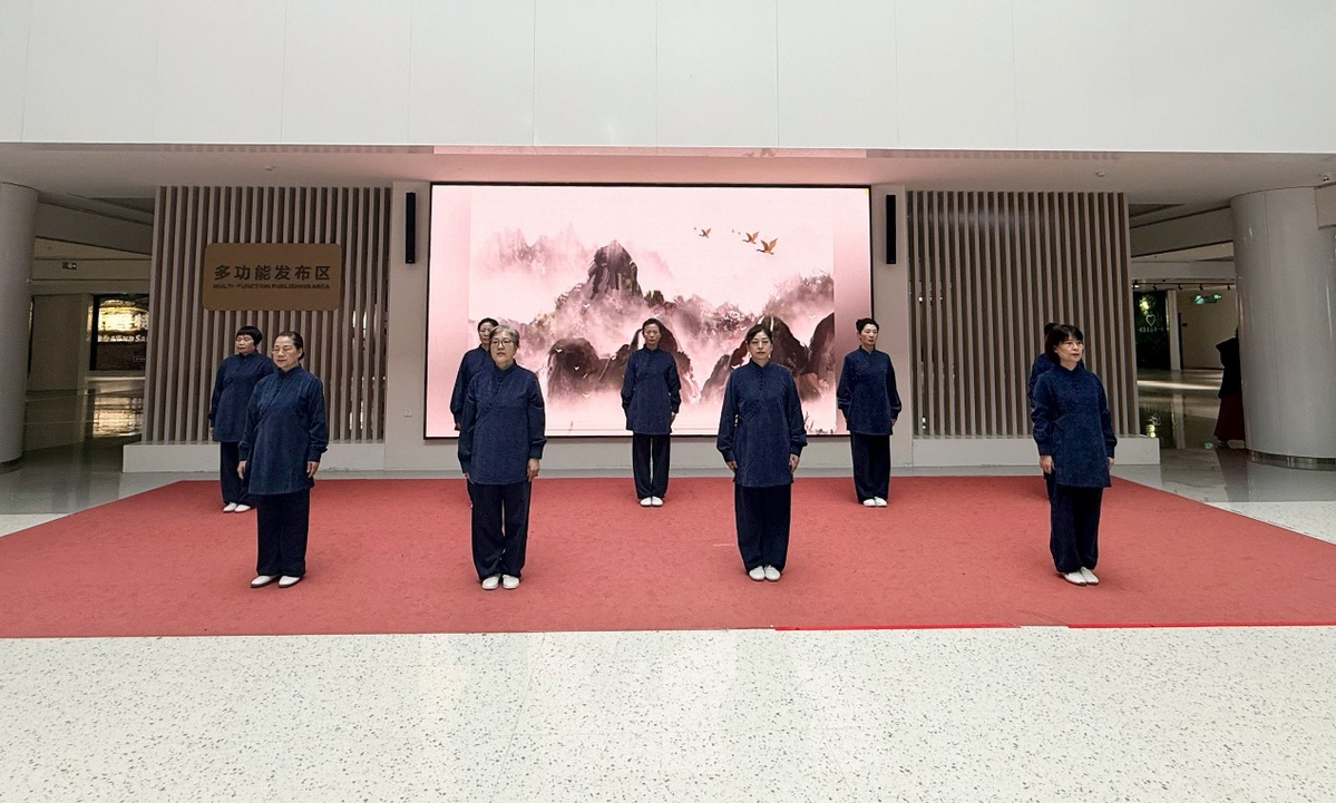 形体班《国标双人舞》动感优雅,舞者默契配合,以灵动舞步诠释对时尚活力的追求;蒙古舞班《故乡的炊烟》豪迈奔放,用舞姿传递草原儿女的故乡情愁;李敏敏团队《花好月圆》歌声婉转,为现场绘就团圆美满的重阳图景。