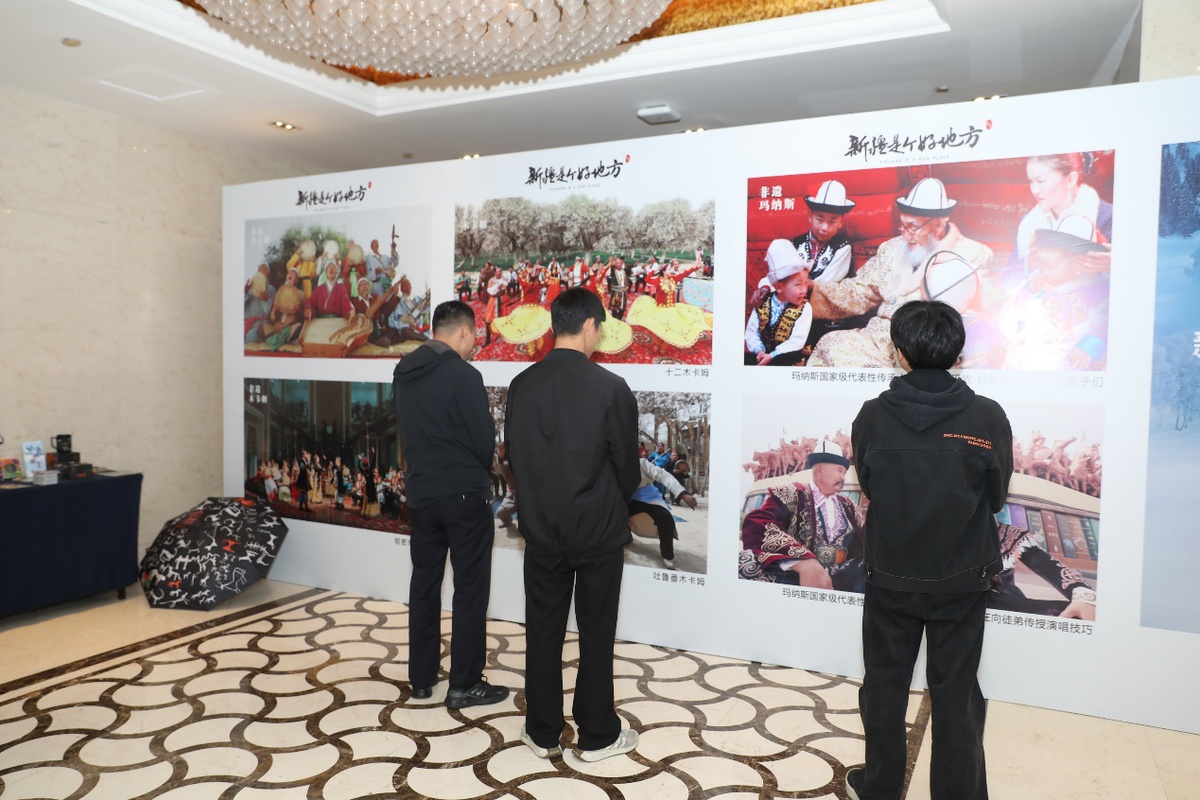 图:活动现场,新疆非遗与旅游摄影展吸引了众多嘉宾驻足观看