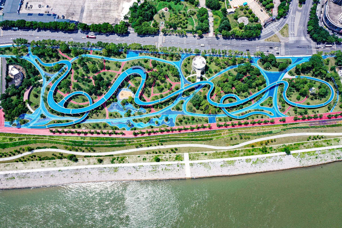 值得一提的是,公园设计中巧妙融入了九江独特的文化基因:《琵琶行》中“浔阳江头夜送客”的诗意、水浒传里的“江州”元素、古代商埠的繁华记忆以及近代开埠的历史印记,均通过雕塑、文化墙、景观小品等艺术形式生动展现,让市民在漫步中自然触摸城市的历史脉络。