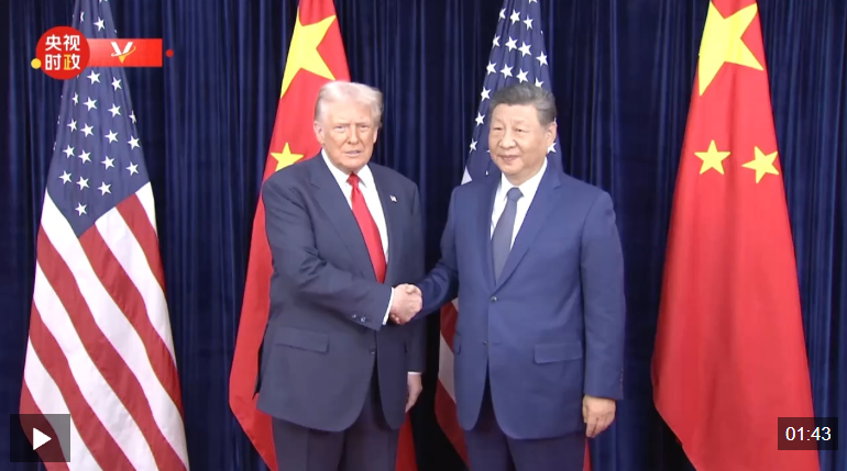当地时间10月30日上午,国家主席习近平在釜山同美国总统特朗普举行会晤。