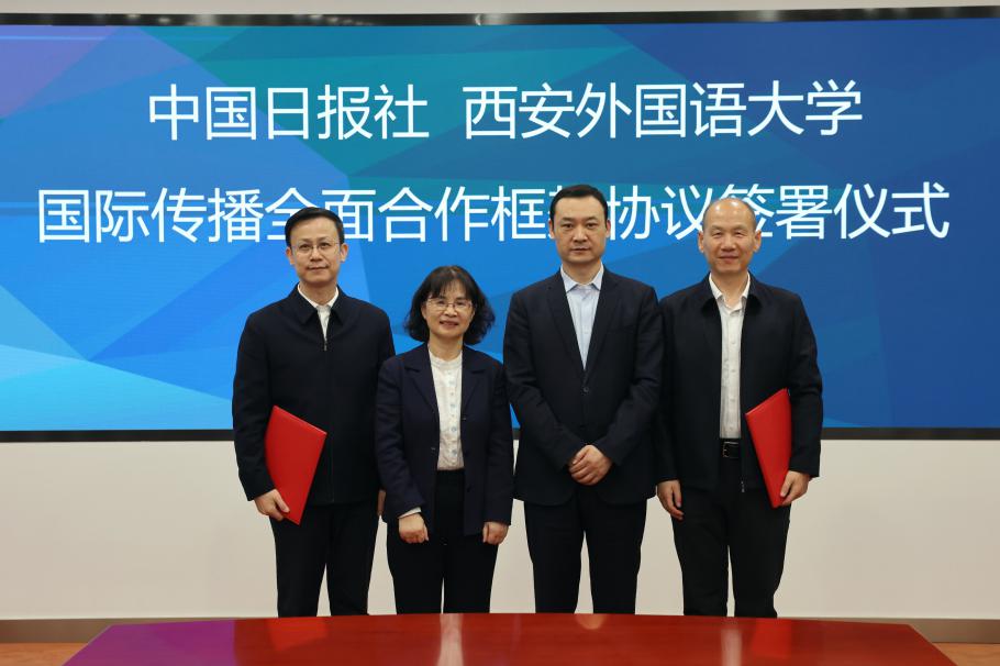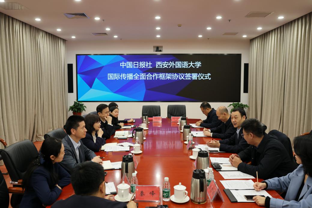 中国日报社总编室、国内部、事业发展部、技术中心、陕西记者站和西安外国语大学党委宣传部、新闻与传播学院、国际传播中心等部门负责人出席仪式。