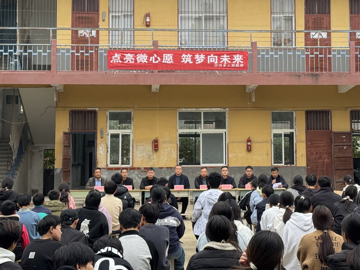 活动在庄严的国歌声中拉开帷幕。由航书记在开场致辞中强调,教育是沙沃乡发展的基石与未来,县委、县政府对教育事业的重视与投入,为乡镇教育发展提供了坚实保障。他表示,本次“微心愿”活动是乡党委、政府落实教育关怀的具体行动,旨在通过实现学生的小心愿,传递党和政府对青少年成长的关怀,激励同学们树立远大理想,勤奋学习,勇于追梦。