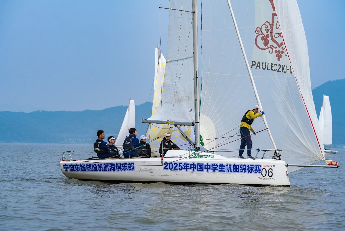 本次赛事规模空前、覆盖面广,共吸引来自青岛、上海、宁波、珠海、北京、南通、厦门、威海、荣成、阳江、大连、海南、苏州、南京、衡水等全国多个沿海及内陆城市的50所学校及俱乐部青少年选手齐聚东钱湖畔。作为全国中学生帆船运动的最高水平竞赛,该赛事不仅为青少年搭建起展示技艺的舞台,也为我国帆船运动推广与后备人才培养提供了重要平台。宁波市教育局领导在开幕式致辞中表示:“帆船运动是勇气与智慧的融合,希望运动员们能够在风浪中锤炼意志,在合作与竞争中学会担当。本次赛事是体教融合的生动实践,将推动更多青少年爱上帆船运动,对培养全面发展的人才具有深远意义和影响。”