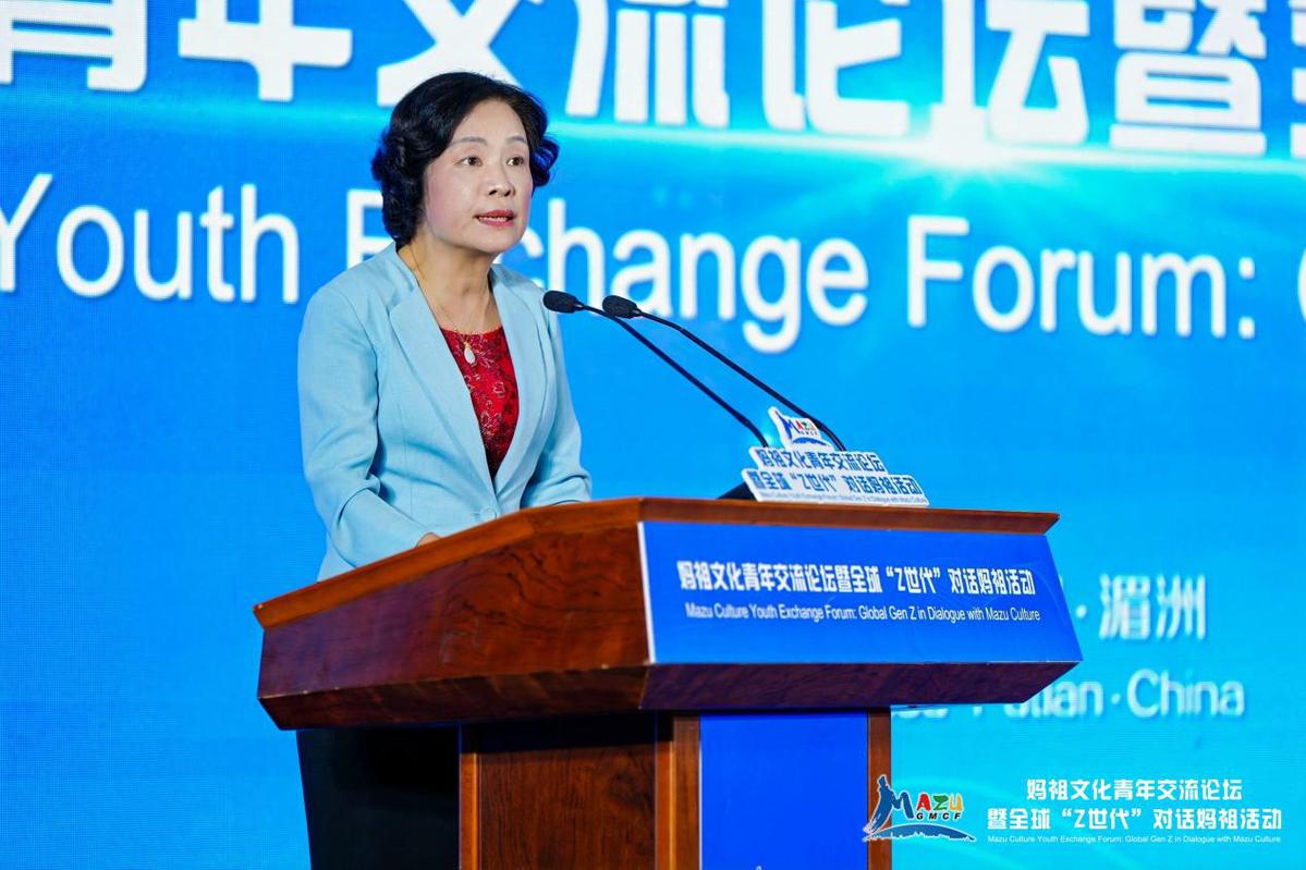 11月1日下午,以“青春同频 和合共行”为主题的妈祖文化青年交流论坛暨全球“Z世代”对话妈祖活动在莆田市湄洲岛妈祖文化论坛会址举行。全国青联副主席梁毓伟,福建省青联名誉主席李腾,全国青联秘书处负责人王英华,莆田市委常委、宣传部部长陈惠黔,福建省青联主席邵明松,中国日报社秘书长曾庆锴,北京大学校务委员会副主任叶静漪,中央民族大学历史文化学院教授、全国妇联副主席(兼)蒙曼等嘉宾出席并发表致辞或演讲。来自五大洲20多个国家的30余位“Z世代”青年代表,20余位来自台湾的青年代表以及高校、新闻界人士等共计约300人参加活动。