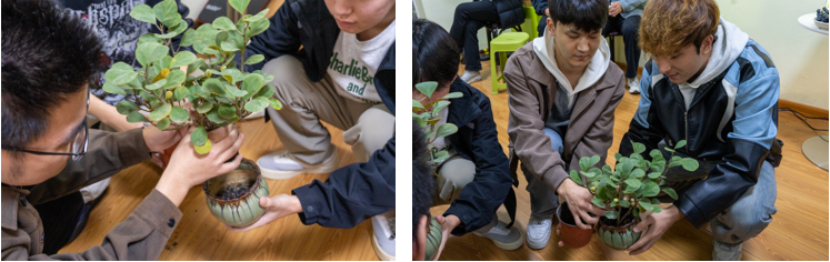 在“以植慰心”环节,同学们共同栽种绿植、记录种植瞬间,在与自然的互动中舒缓压力,“心理健康之苗”与“友谊之苗”共同生长。在种植中学生们不仅是参与者,更是文化的传承者与创造者,来自不同民族的同学们在协作中增进了解,在互动中加深情谊,欢声笑语汇聚成温暖的海洋。