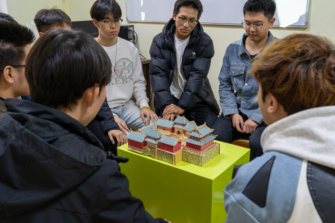 最后,同学们以专业特色为切入点,围绕古建筑中的“榫卯结构”开展主题讨论,在拆解木构模型、剖析工艺原理的过程中,探寻中国传统文化的深层智慧,让专业学习与文化传承实现生动融合。