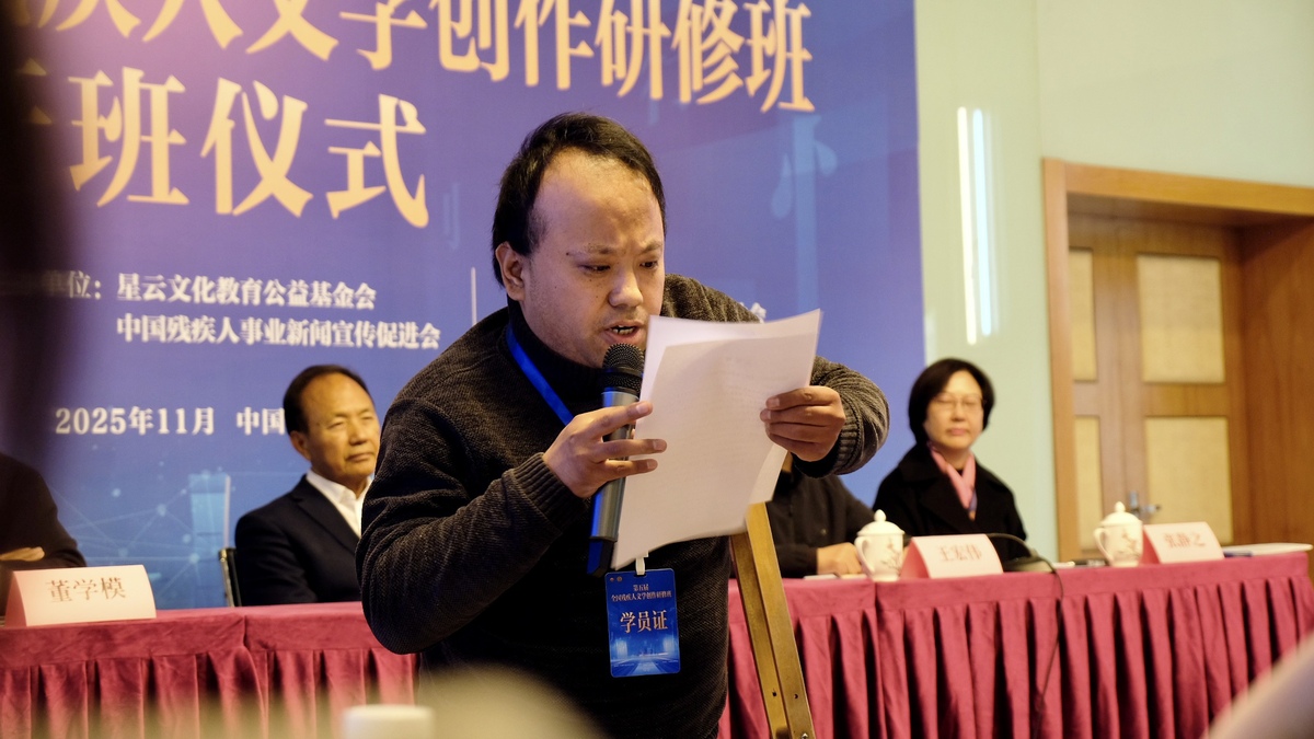 中国日报11月4日电(记者 程思)2025年11月3日,第五届全国残疾人文学创作研修班在京开班。来自全国26个省(区、市)的32名残疾人文学爱好者齐聚一堂,开启为期7天的文学研修。