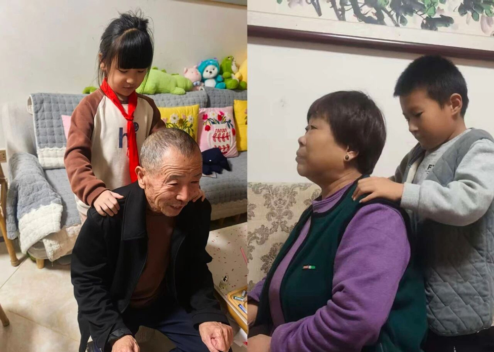 青岛明德小学学生为长辈捶背(图片由叶晨授权提供)