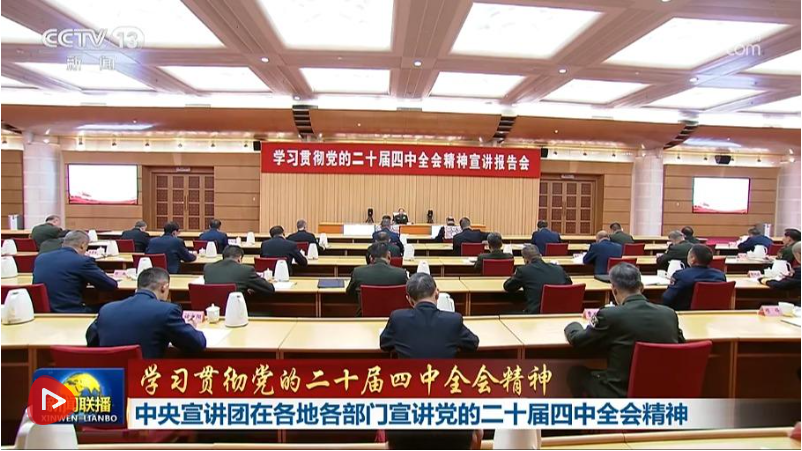 央视网消息(新闻联播):学习贯彻党的二十届四中全会精神中央宣讲团成员在各地各部门宣讲,推动全会精神学习走深走实。