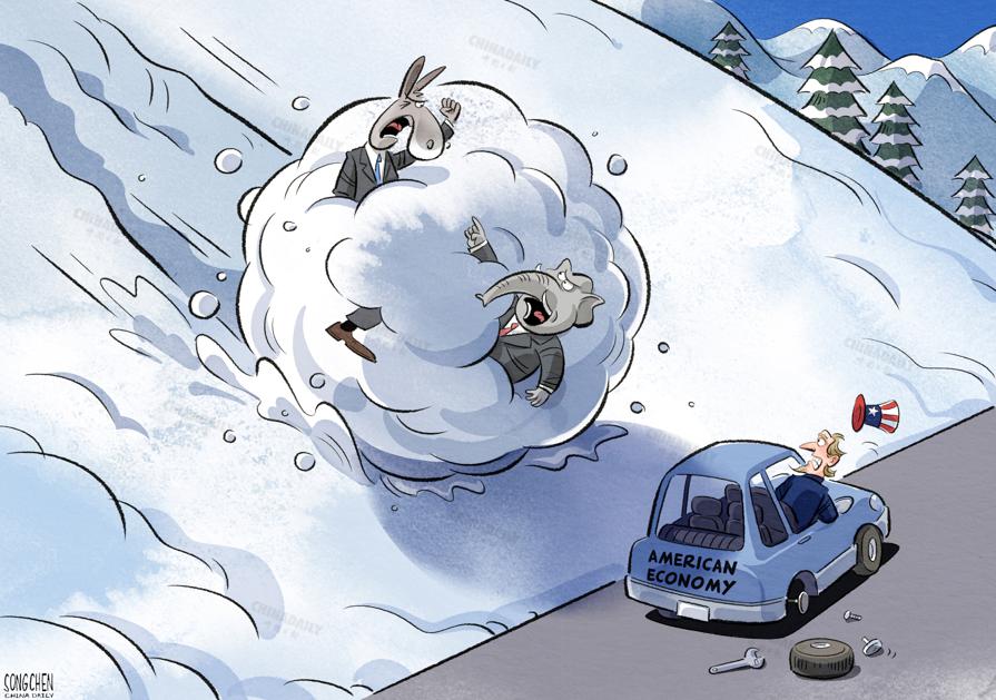 美国政府停摆引发“滚雪球效应”,令美国经济雪上加霜。(来源:中国日报 宋晨 英文《中国日报》2025年11月06日8版)