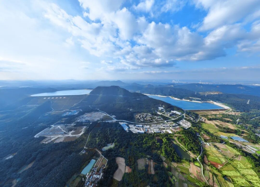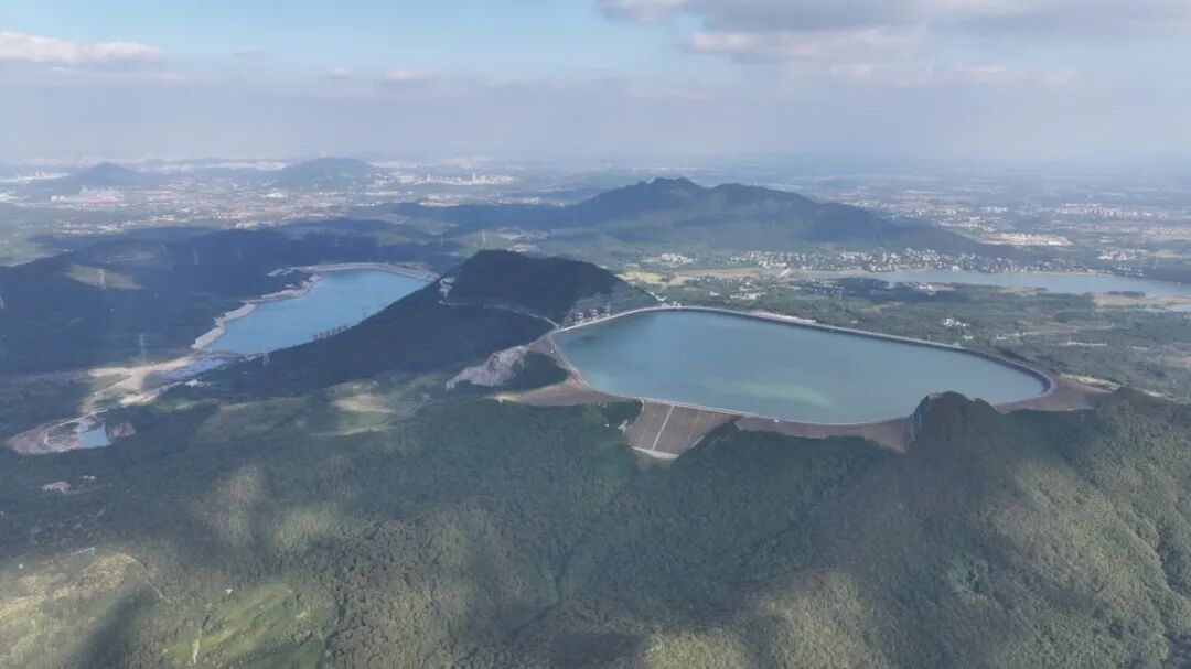 句容抽水蓄能电站坐落于江苏省镇江市,电站总装机容量135万千瓦,设计年抽水电量18亿千瓦时、年发电量13.5亿千瓦时,可满足约53万户家庭一年的用电。电站上水库高182.3米,相当于60层楼高,是世界最高的抽水蓄能电站大坝、世界最高的沥青混凝土面板堆石坝、世界最大规模的库盆填筑工程。