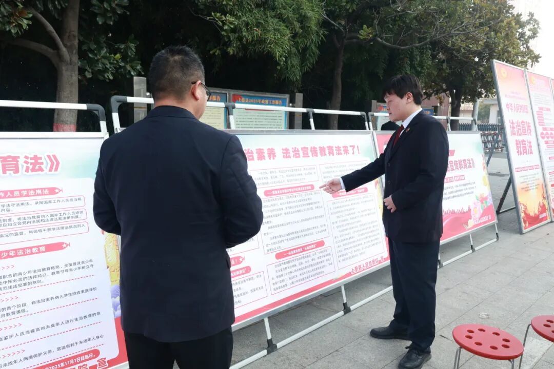活动现场,检察干警精心布置宣传阵地,通过多重形式提升宣传实效。设置图文并茂的普法展板,系统展示《中华人民共和国法治宣传教育法》的立法宗旨、核心条款与实践要求,让群众直观理解法律内涵;悬挂“增强全民法治观念推进法治社会建设”等醒目宣传标语,营造浓厚普法氛围;设立法律咨询台,检察干警“面对面”接待群众,形成全方位、立体化的宣传格局。