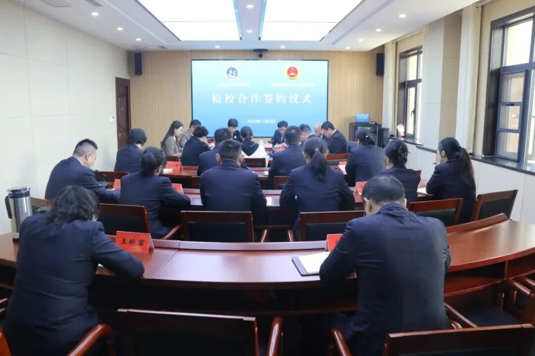 签约仪式上,常保军发表致辞,详细介绍了区情及本院基本情况,同时指出检校合作是新时代检察机关延伸职能、服务大局的重要途径,通过资源互通、优势互补,既能提升检察官的理论素养与专业能力,也能为高校注入鲜活的法治实践资源,实现司法实践与理论教学的同频共振。郑志锋围绕学院的办学特色、学科建设、人才培养目标展开介绍,充分展现了高校为司法实践持续输送优质人才的潜力与决心。