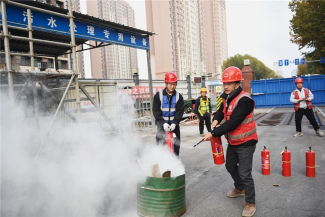 紧接着,消防官兵围绕施工动火规范、电气安全管理、应急疏散流程及消防器材使用等关键场景开展专项培训,通过案例讲解与要点拆解,为在场人员普及实用消防知识。在消防演练环节,各班组现场进行全应急灭火实操演示,将培训所学转化为实战能力,进一步提升应急处置水平。