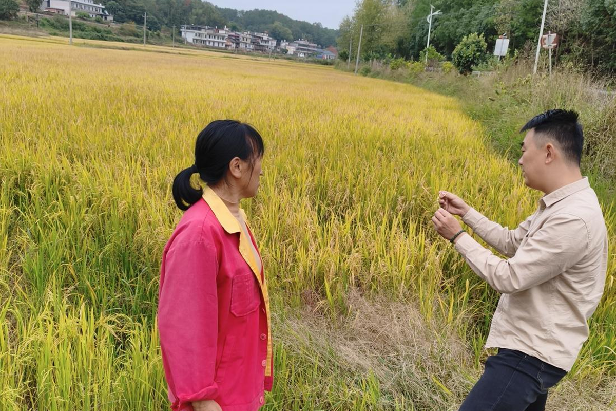 晴好天气到来的关键节点,宜章县气象局副局长欧阳亨利带队深入梅田、浆水、杨梅山等乡镇的田间地头,实地查看晚稻收割进度、稻谷成熟品质及晾晒情况。在收割现场,工作人员与忙碌的农户、合作社负责人面对面交流,详细询问气象服务产品的接收渠道、实用效果及后续需求。“这轮晴好能持续多久?”“后续会不会有降温降雨影响秋冬种?”针对农户们最关心的问题,工作组结合最新气象资料逐一耐心解答,现场给出科学建议,提醒大家抢抓当前晴好天气加快收割收尾,同时做好已收稻谷的通风晾晒,防范堆积发热霉变。“气象局不光发信息提醒,还亲自到田里来讲解,心里一下子就踏实了!”一位正在翻晒稻谷的老农感慨道。这场一线指导,既是宜章县气象局践行“人民至上、生命至上”理念的具体行动,更是打通气象服务“最后一公里”的生动实践,让气象服务真正扎根田间、惠及农户。