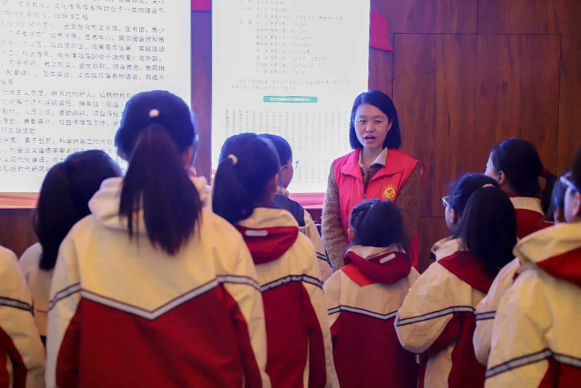 活动伊始,新时代文明实践中心的志愿者化身“文明向导”,带领同学们有序参观。向同学们介绍了我市精神文明建设历程、文明城市创建、新时代文明实践及志愿服务等,同学们一边认真聆听讲解,一边不时驻足讨论,深刻体会到文明不仅是一种素养,更是融入日常生活的行为准则。