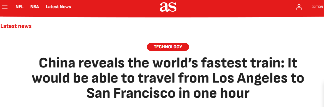 在基础设施建设方面,中国高铁网络仍在不断拓展。西班牙AS新闻网站日前在报道中指出,中国再次挑战速度极限——这一次,它可能会重新定义全球旅行的未来。在CR450型高速列车的技术标准下,理论上可将从洛杉矶到旧金山(超过380英里)六个小时的行程缩短至一个多小时。