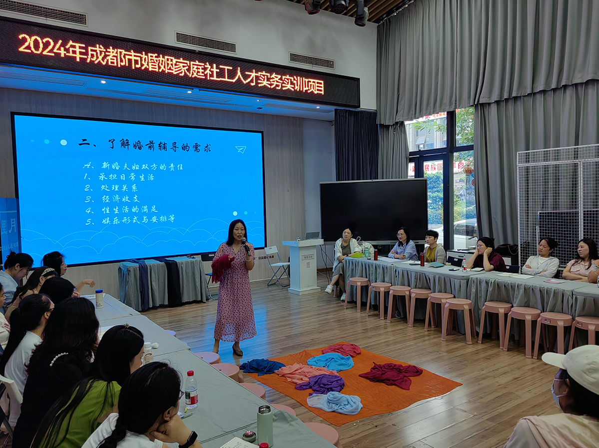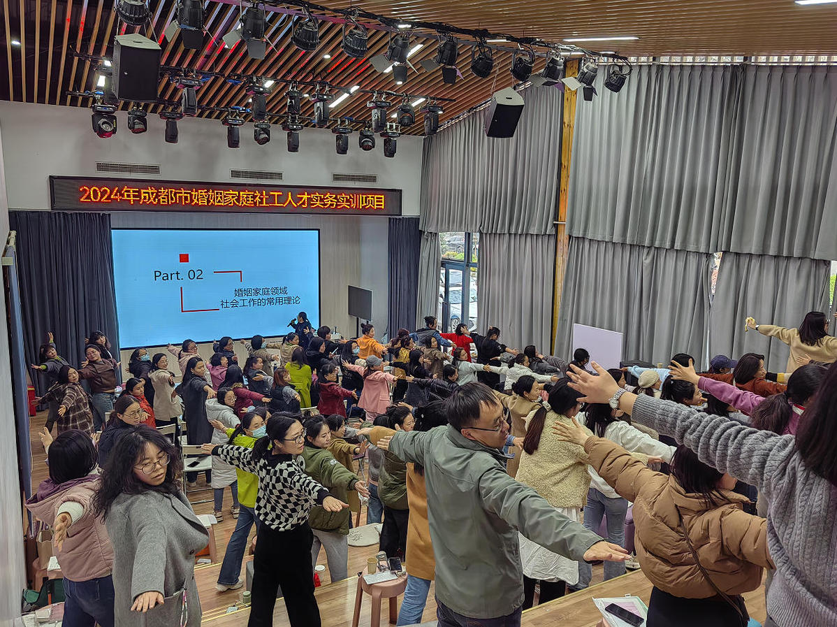 如今,这批经过系统培育的社工,已成为基层婚姻家庭矛盾化解、家风建设的 “生力军”:他们在婚登处为新人送上 “婚姻经营指南”,在社区为亲子家庭搭建沟通桥梁,在信访窗口为受困妇女提供温暖支撑。从 “一个项目” 到 “一支队伍”,从 “课堂知识” 到 “万家幸福”,2024 年成都市婚姻家庭社工人才实务实训项目,正以专业力量守护着成都家庭的幸福底色,为构建和谐社会写下生动注脚。(图片由成都市武侯区你我他社区治理行动与研究中心授权提供)