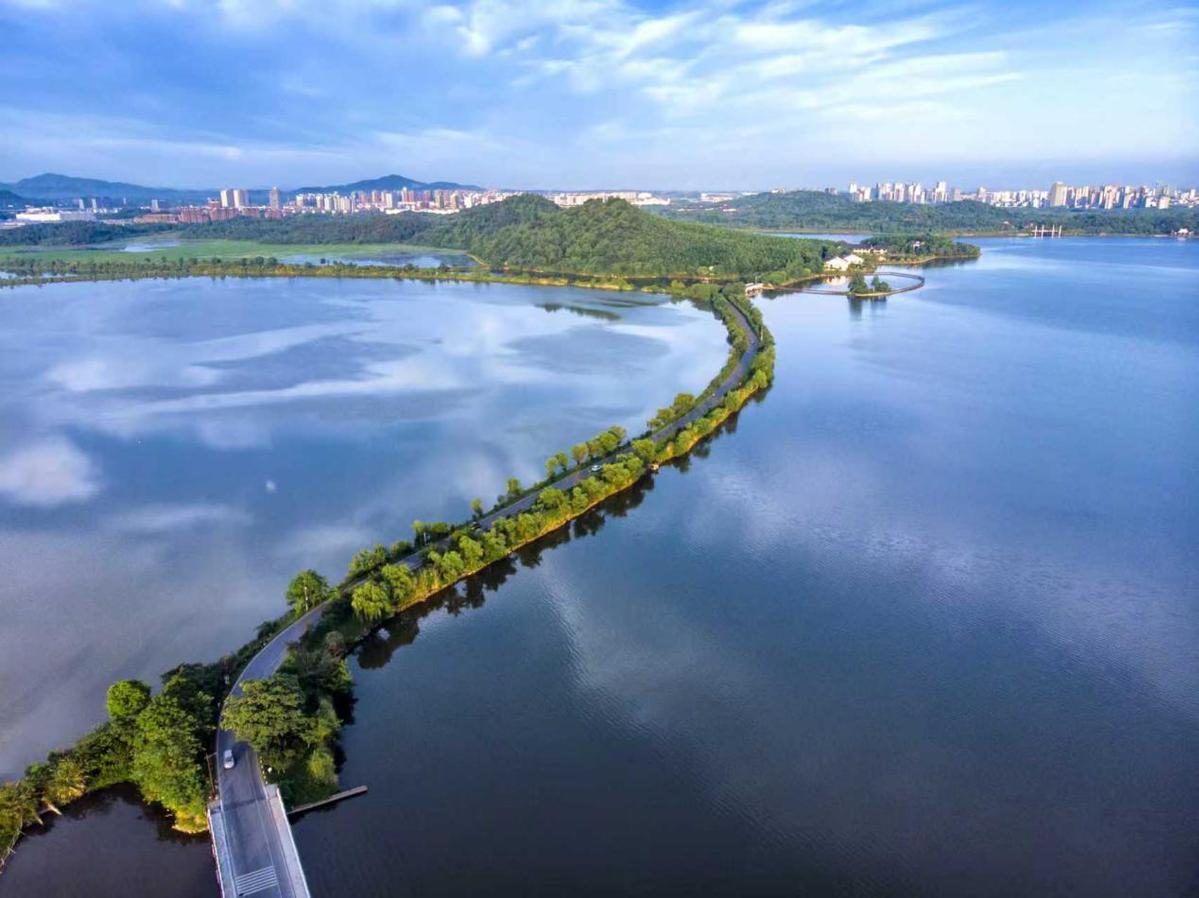 “水如一匹练,此地即平天。”记者团沿着池州市平天湖景区的湖上栈道徐行,蜿蜒的栈道如一条丝带,将人与自然温柔地连接在一起,湖水与天际相接,远处齐山轮廓若隐若现。景区有一条长约1公里的“天路”,高空俯瞰时呈现出长路在水、浑然天成的视觉效果。多家主流媒体报道后,吸引游客纷至沓来,迅速成为网红打卡地。