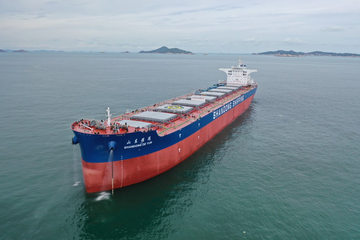 开花结果,持续积蓄创新澎湃动能。坚持以创新为第一动力,鼓励职工创新的源泉竞相涌动,新质生产力加速释放。近五年来,累计研发投入近亿元,先后获得授权专利30件,参与制定国家标准1项,6个项目分别获批山东省重点研发计划项目和省交通运输科技计划项目,1个项目获山东省交通运输科技二等奖。近期,山东海运与北海造船启动了32.5万吨甲醇双燃料新型矿砂船项目,该船型是目前全球最节能最环保的绿色散货船舶、全球第一艘拥有具备碳捕捉和存储能力的超大型矿砂船,可有效减少99%的硫氧化物排放、60%的氮氧化物排放和95%的颗粒物排放,开创了绿色航运新路径。创新已经成为了企业高质量发展的第一驱动力。