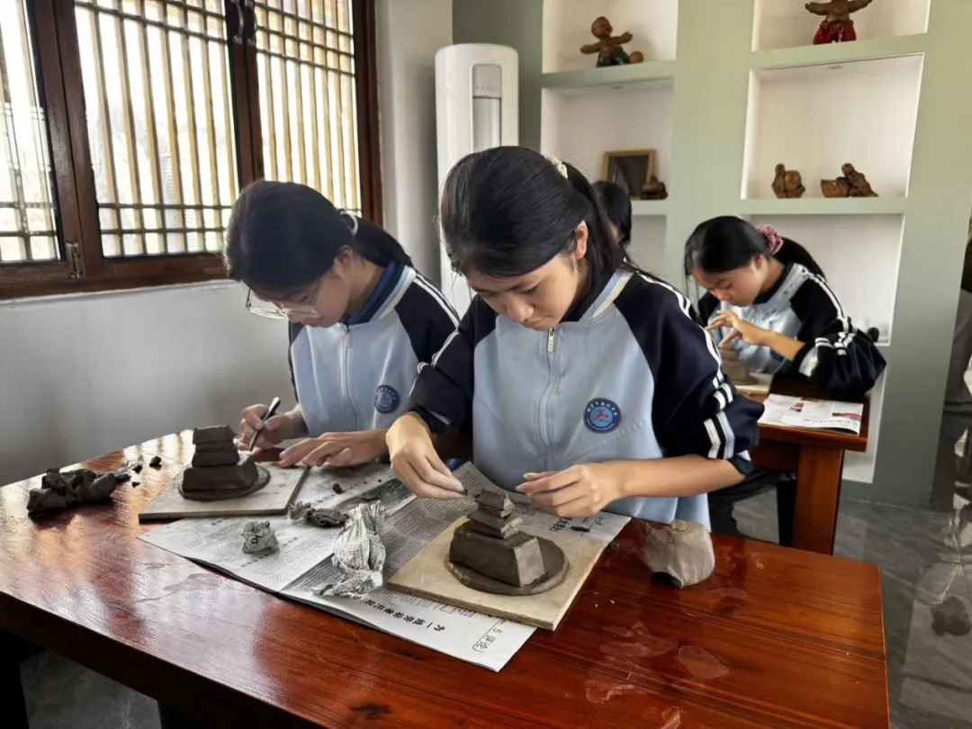 泥土塑匠心,陶艺承文明。为让学生在沉浸式实践中感受传统陶瓷艺术的魅力,深化对中华优秀传统文化的认知,示范区教体系统组织辖区学生分批走进鹤壁窑,开展“陶艺研学+爱国教育”主题活动,深化劳动教育实践内涵。活动中,鹤壁窑非遗传承人带领学生探寻其“北方青瓷发源地”的历史脉络,从商周原始青瓷到唐宋绞胎工艺,让学生直观感受传统文化魅力与劳动创造价值。实践环节,学生以“天安门”为核心题材创作泥塑,经揉泥、塑形、修坯等步骤完成作品,在动手实践与问题解决中践行“精益求精”的工匠精神。