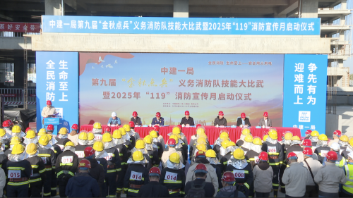 今年11月是第34个全国消防宣传月。近日,中建一局在朝阳孙河组团产业用地项目举办第九届“金秋点兵”义务消防队技能大比武暨2025年“119”消防宣传月启动仪式,认真落实安全生产“雷霆行动”和安全生产“三个专项整治”行动要求,全面检验以义务消防队为核心的企业应急救援力量,切实提升全员消防安全意识与应急处置能力,为企业安全生产和火灾防控奠定坚实基础。