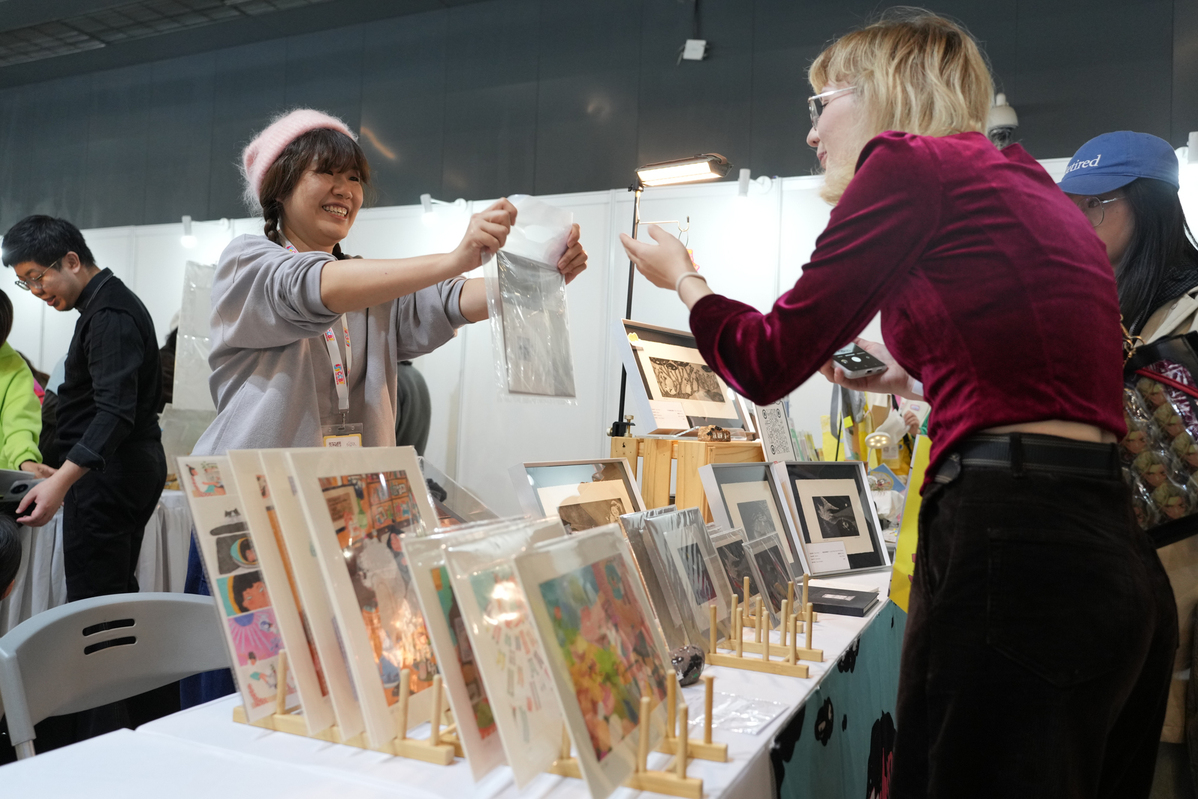 11月14日,中国插画师王臻展示她的铜版画作品。中国日报记者 高尔强 摄