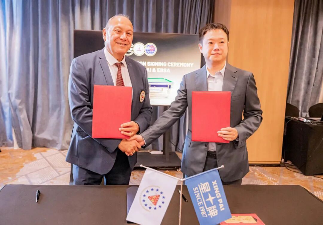 2025年11月10日,在卡塔尔多哈举行的国际台球联合会(IBSF)年度成员国大会期间,在IBSF主席穆巴拉克·阿尔-卡亚林等人的见证下,中国星牌与欧洲台球联合会(EBSA)正式签署战略合作协议。根据协议,双方将建立为期十年的深度战略合作关系,在赛事合作、青少年培养、教练与裁判培训、以及器材技术创新等领域展开全方位合作。
