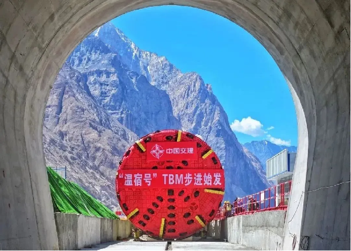 中交天和自主研制的两台刀盘直径8.83米、总长235 米的 TBM“昭苏号”和“温宿号”,从西天山昭温隧道两端对向掘进。在82.3%岩爆地层和极端环境下,“昭苏号”和“温宿号”采取“敞开式+单护盾双模式”设计,配置超前地质预报、岩爆探测。、超前探水、可扩挖刀盘、多层次注浆系统等世界先进技术,采用“仰拱块铺设+常规支护”新型工法,掘进效率和安全系数大幅提升。“温宿号”单日最高掘进60.6米、单月最高掘进862.4米,较原计划提前4个月突破5000米大关,创下高原隧道掘进新速度。