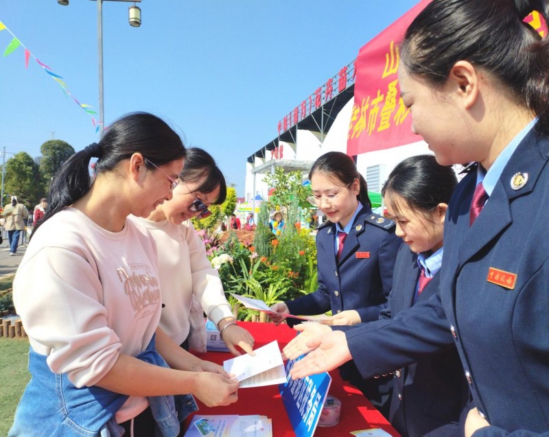 在税收政策咨询点前,税务干部围绕增值税小规模纳税人减免、自产自销花卉苗木免征增值税、花卉种植减半征收企业所得税等行业热点政策,以及2026年度城乡居民医保的缴费标准、缴费时间、线上线下缴费渠道进行宣传讲解。同时,税务干部通过“流动宣传”的方式,向现场参展企业发放税收宣传册,解答有关涉税问题。