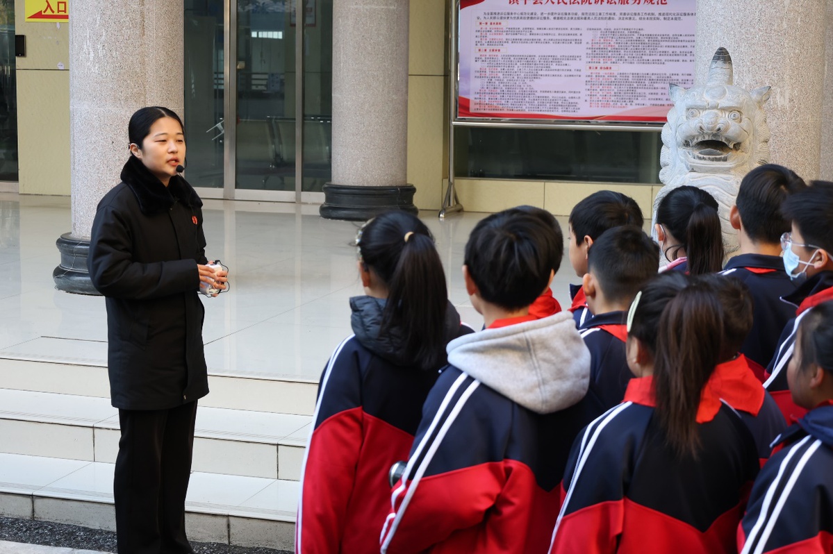 随后,同学们安静有序地步入审判庭,全程旁听了一起刑事案件的庭审。庄严肃穆的国徽、严格的庭审程序、法官的公正裁决,让同学们“零距离”感受到了法律的威严与公正,并在潜移默化中将法治精神的种子深植于心。庭审结束后,同学们还参观了法院的“玉见·同心圆”未成年人保护工作室,让同学们深刻感受到,法律不仅是威严的准绳,更是温暖的守护。