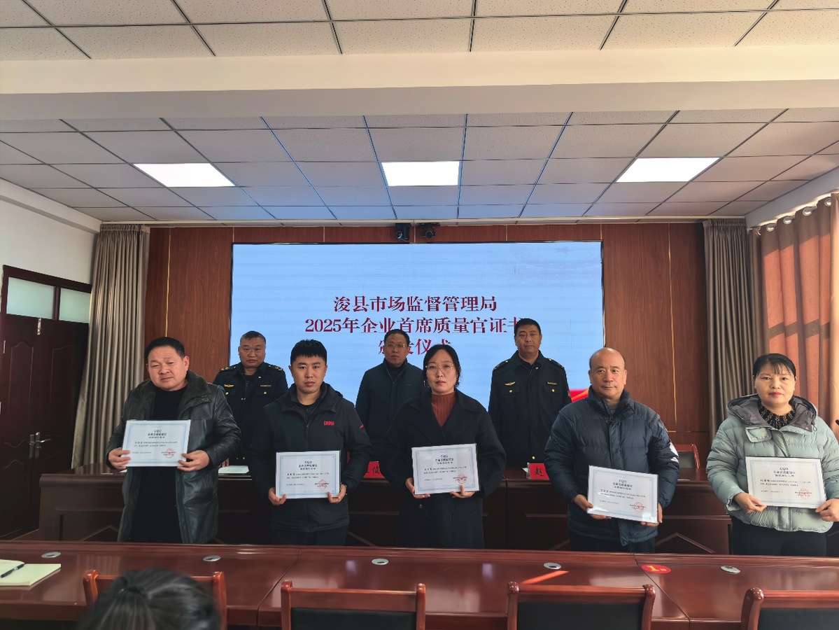 为深入贯彻落实《质量强国建设纲要》精神,充分发挥企业主体作用,扎实推进质量强县建设,11月18日,浚县市场监督管理局举行2025年度企业首席质量官(CQO)任职培训证书颁发仪式,为15名企业首席质量官集中授证。
