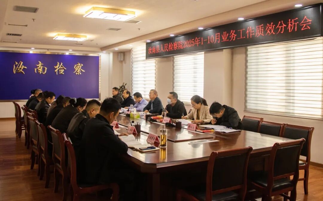 11月14日,汝南县人民检察院召开2025年1-10月业务工作质效分析会,总结复盘1-10月检察工作运行情况,查摆当前工作中的短板弱项,安排部署冲刺攻坚任务。会议由院党组书记、检察长朱军主持,院党组成员、检委会专职委员、各部门负责人参加。