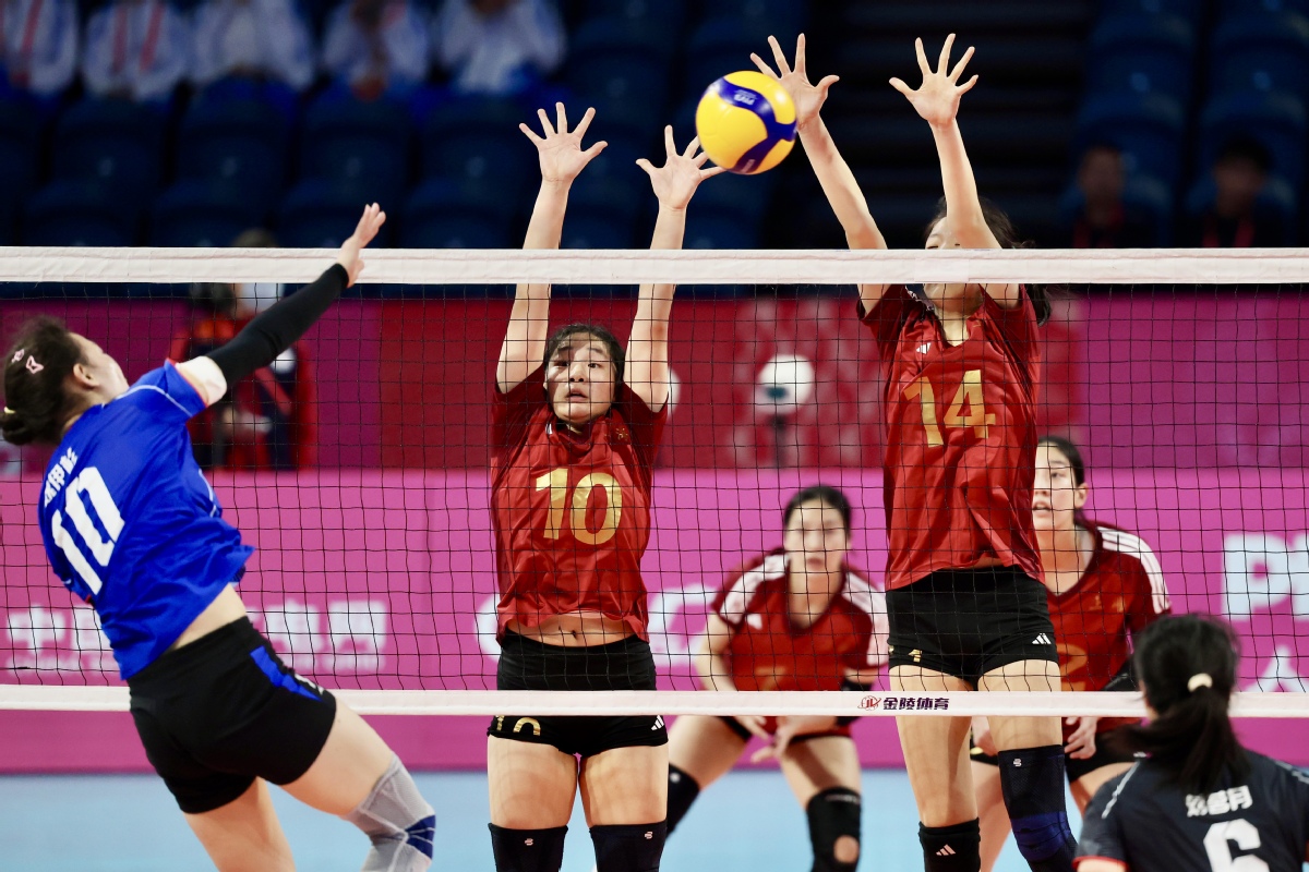 中国日报11月19日电(记者 魏晓昊)2025年11月18日,第十五届全国运动会排球女子18岁以下组决赛在深圳龙华文体中心举行,江苏队3比0战胜上海队,获得冠军。