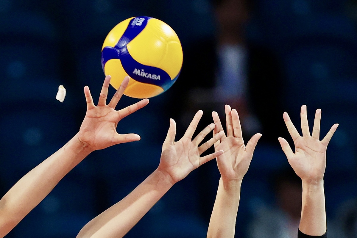 球员的护指在拦网时脱落。中国日报记者 魏晓昊 摄