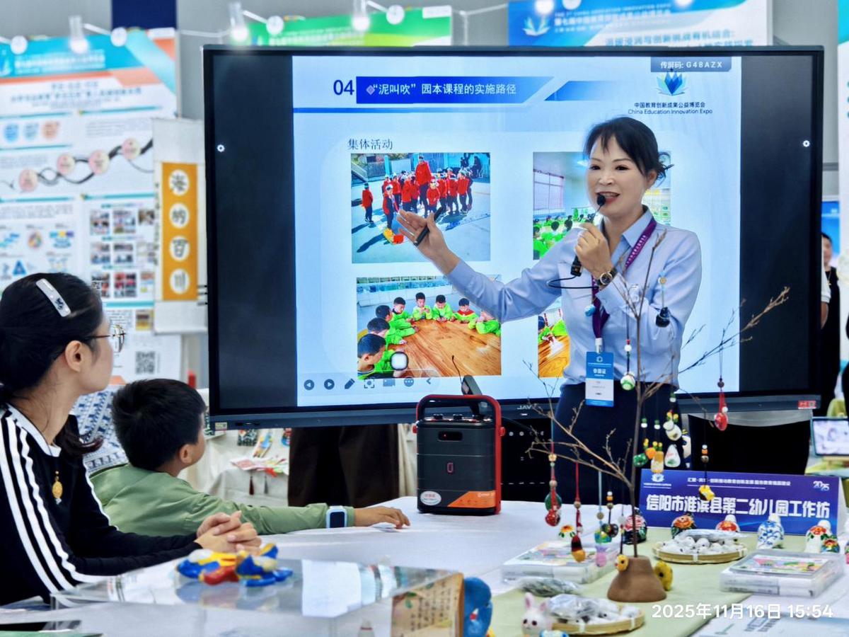 11月15日-17日,第七届中国教育创新成果公益博览会(教博会)在广东省珠海国际会展中心隆重开幕,汇聚了全国基础教育领域的顶尖创新成果。其中,淮滨县第二幼儿园的教育创新成果“幼儿园引入民间艺术‘泥叫吹’构建园本课程的实践”成功入选并受邀参展。这一扎根于乡土文化的教育实践,在全国性的教育盛会上,以其独特的文化底蕴与创新的教育模式,吸引了众多教育界专家与同行的目光,成为一抹亮丽而独特的风景。