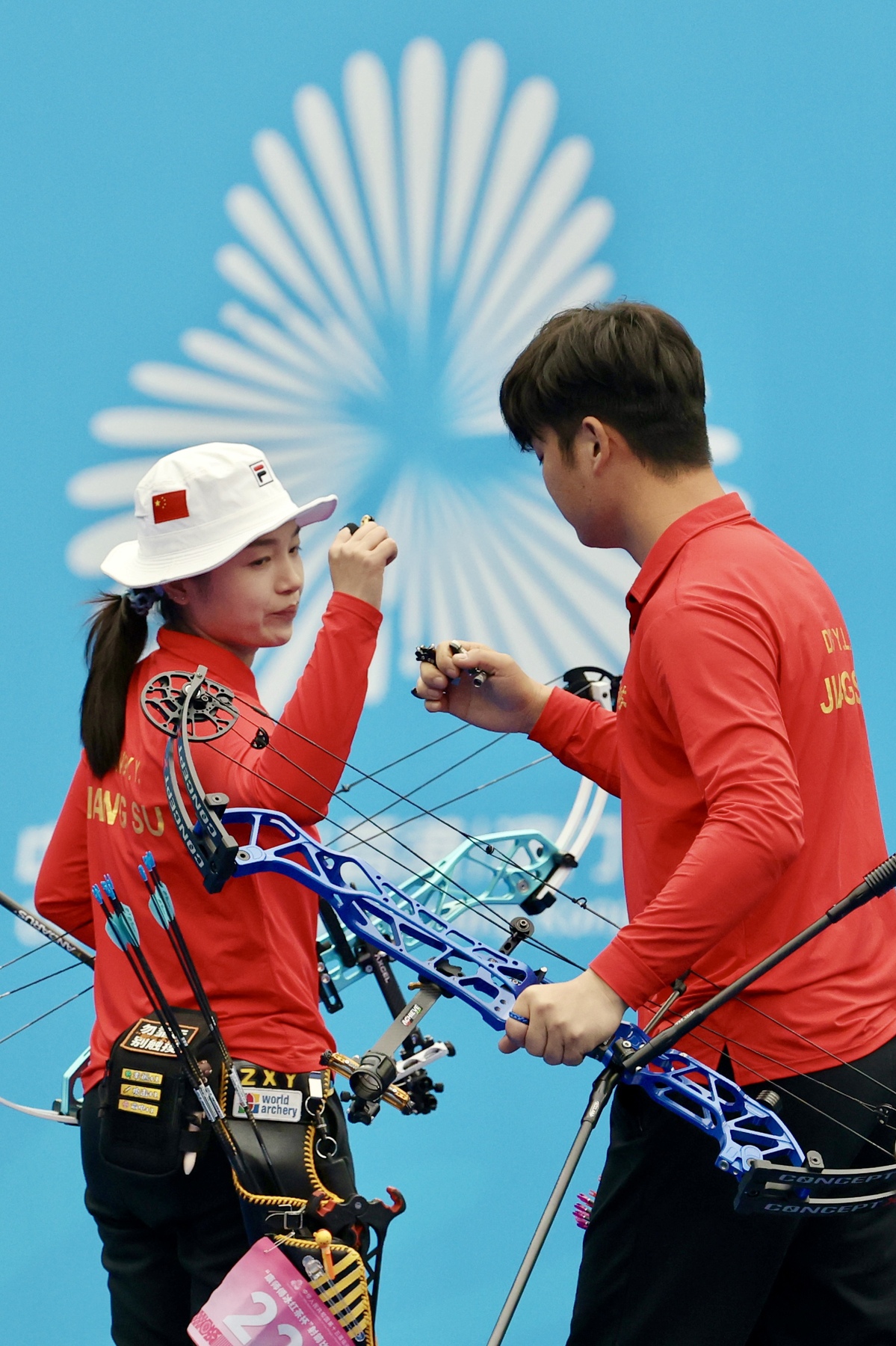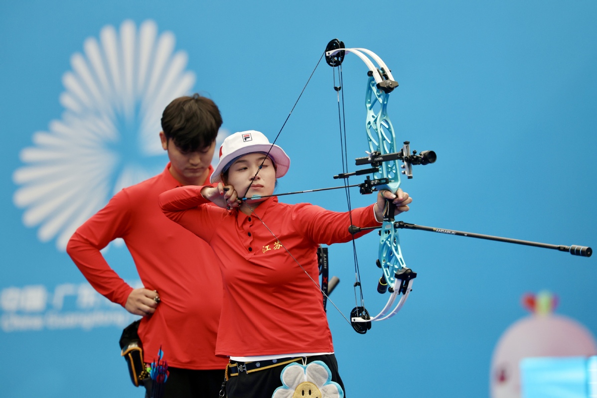 中国日报网11月21日电(记者 魏晓昊)2025年11月20日,第十五届全国运动会射箭复合弓混合团体决赛在广东深圳举行,江苏队155比153战胜浙江队,夺得冠军。