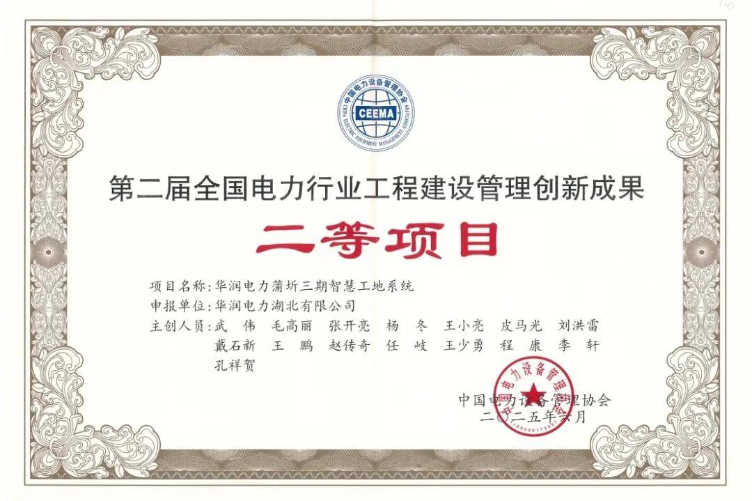 华润电力蒲圻三期智慧工地系统高效集成塔吊管理、厂区监测、智能行为分析等25个功能模块,通过物联网技术实现施工现场全要素可视化与智能化管理。该系统投入至今已累计通过AI识别和分析手段发现人员习惯性违章、安全装置预警、环境监测预警等隐患9881条,并实现100%整改闭环,取得了安全零事故、环保零舆情的安健环管理成果。在创新产出方面,该系统目前已成功申报2项软件著作权、2项专利,发表核心论文1篇,先后斩获2024年度电力建设智慧工地典型案例、全国电力安全文化精品工程等多项荣誉。