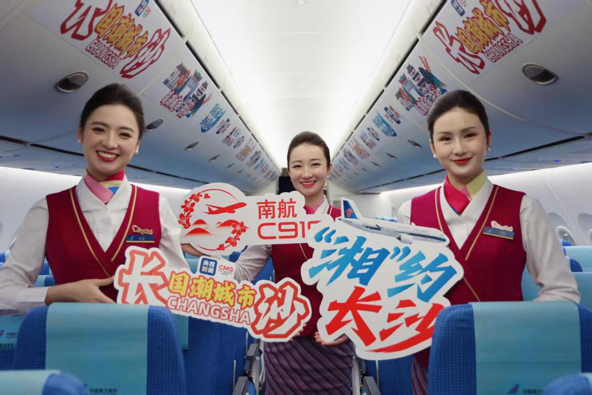 “这是我第一次在飞机上体验中国文化,很有意思,让我对长沙之旅更加期待了。”一位乘坐南航C919国潮主题航班的法国旅客说道。
