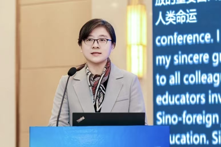 安延代表中国教育国际交流协会,向大会的顺利召开表示热烈祝贺。她表示,语言教学是中外合作办学的“第一抓手”,更是实现“双向互鉴”的“基础工程”。它不仅承载着知识传递的功能,更肩负着跨文化沟通、价值共识凝聚的时代责任。面向未来,要聚焦三个核心方向:一是以“提质增效”为根本,紧扣人才培养核心素养,优化课程体系与跨文化能力培养链路,让语言教学真正服务于办学质量升级。二是以“数字赋能”为支撑,依托中外教育数字资源平台,推动AI与语言教学深度融合,打破时空限制,让优质资源惠及更多师生。三是以“双向互鉴”为灵魂,既要吸收国际先进教学理念与方法,更要融入中国元素与学科特色,构建兼具国际视野与中国底色的语言教学新范式。