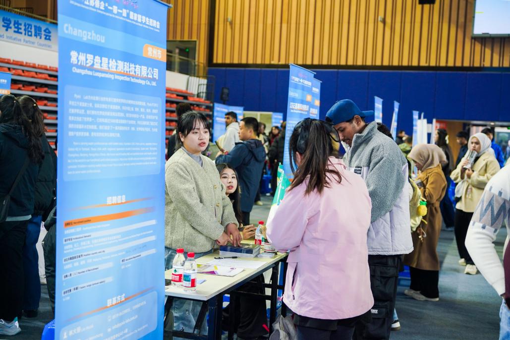 招聘会现场,各企业展位前人头攒动,留学生们积极咨询岗位需求、投递简历。无锡学院也门留学生阿布分享了自己在无锡进出口贸易公司实习的经历,他认为留学生既了解祖国文化需求,又熟悉中国市场环境,这种双重背景是求职过程中最宝贵的优势,希望能加入有国际视野的江苏企业,为传播中国声音、促进互联互通贡献力量。