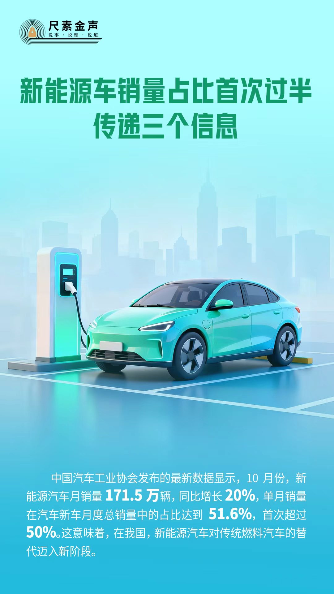 尺素金声|新能源车销量占比首次过半,传递三个信息