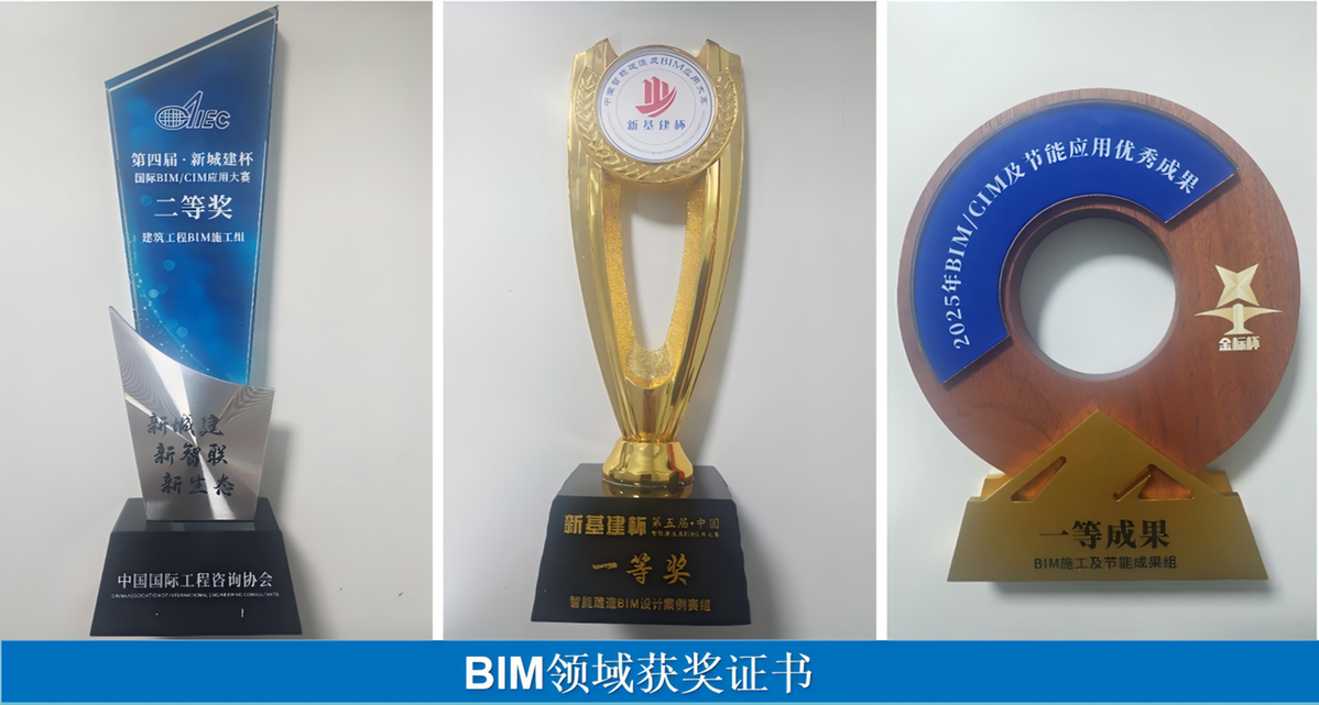 由中建三局深圳公司承建的宝龙上井项目荣获“新城建杯”国际BIM/CIM应用大赛二等奖、第五届“新基建杯”中国智能建造及BIM应用大赛一等奖,2025第六届“金标杯”BIM/CIM及节能应用优秀成果一等奖,在BIM技术领域取得了显著成果,获得了行业的高度认可。