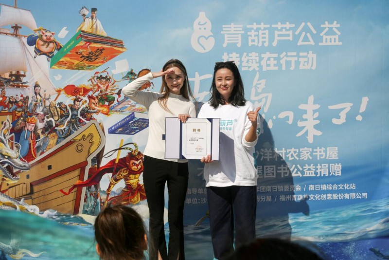 下午1时,赠书仪式正式开始。南日岛沙洋村农家书屋不等屿分屋杨建波代表接受“青葫芦爱心图书角”捐赠,并对青葫芦公司的公益行动表示感谢。杨建波表示,本次青葫芦爱心捐赠的青葫芦立体书、青葫芦点读笔、大英儿童百科全书等书籍,为沙洋村的孩子开启全新的阅读体验,激发孩子的阅读兴趣,进一步扩宽海岛儿童的阅读视野,十分有意义。青葫芦公益南日岛站爱心大使伯妮在发言中表示,希望通过自己的参与,让更多孩子感受到阅读的乐趣与汉语的魅力。