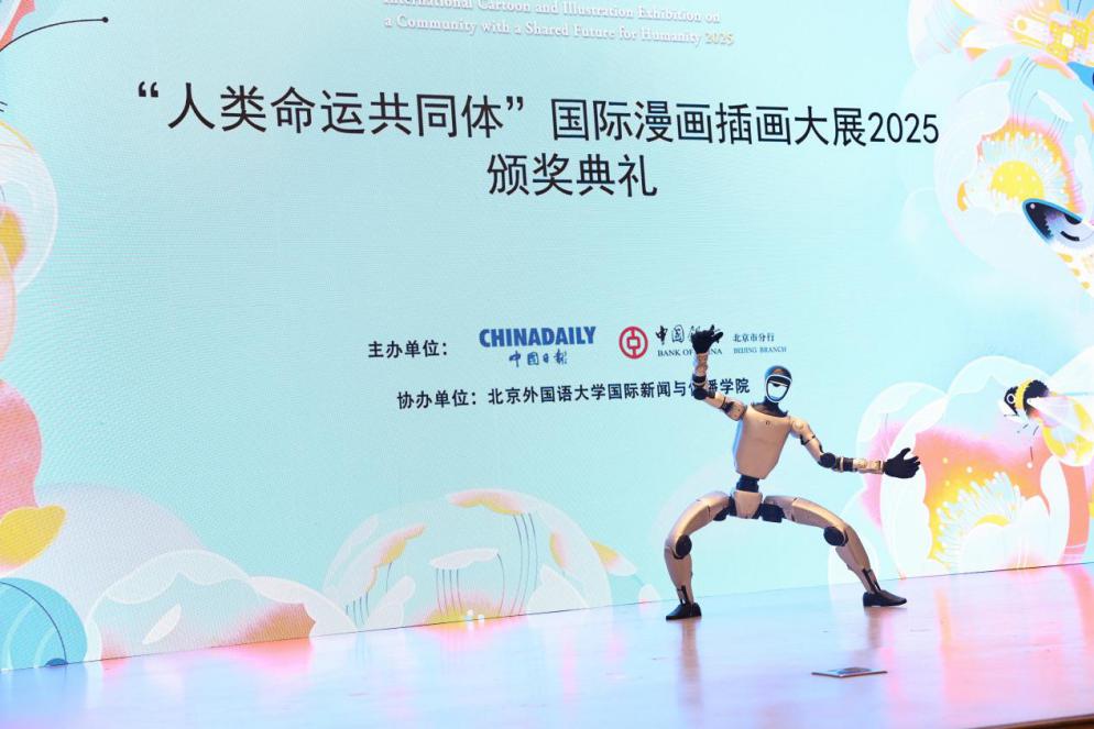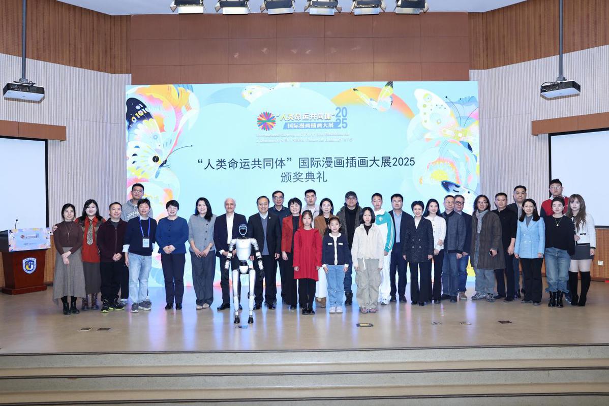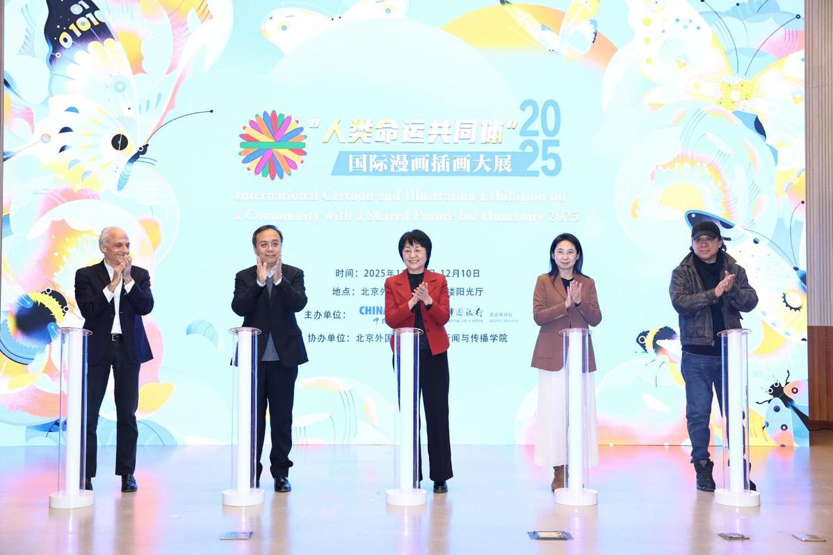 11月26日,由中国日报社联合中国银行北京市分行主办的“人类命运共同体”国际漫画插画大展2025颁奖暨作品展开幕式在北京外国语大学举办。中国日报社副社长朱宝霞、北京外国语大学党委副书记贾德忠、中国银行北京市分行副行长颜冰、中国美术家协会漫画艺委会主任刘曼华、意大利雕塑家迪奥尼西奥·契马莱利教授等中外嘉宾出席仪式。