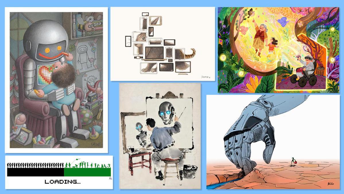 金奖获得者、波兰插画家伊莎贝拉·科瓦尔斯卡-维切奥雷克表示:“我的作品表达了人工智能的过度使用对儿童现实感知造成的影响。”来自乌兹别克斯坦的银奖获得者、漫画家穆扎法尔·尤尔奇博耶夫说:“科技无论如何进步,它都应该带来希望和生机。”来自中国的铜奖获得者蔚少颖说:“科技不只是冰冷的工具,它也可以是爱的延伸,是情感传递的桥梁。科技的每一次进步,都是为了让生活更有温度。”来自西班牙的铜奖获得者、漫画家阿西尔·桑斯说:“作为创作者,我们有责任提醒世界,科技与生活应该始终携手并进。”来自北京的青少组优秀奖获得者、四年级学生李羽菲说:“科技的发展,不是为了取代自然,而是为了更好地守护我们共同的家园。”