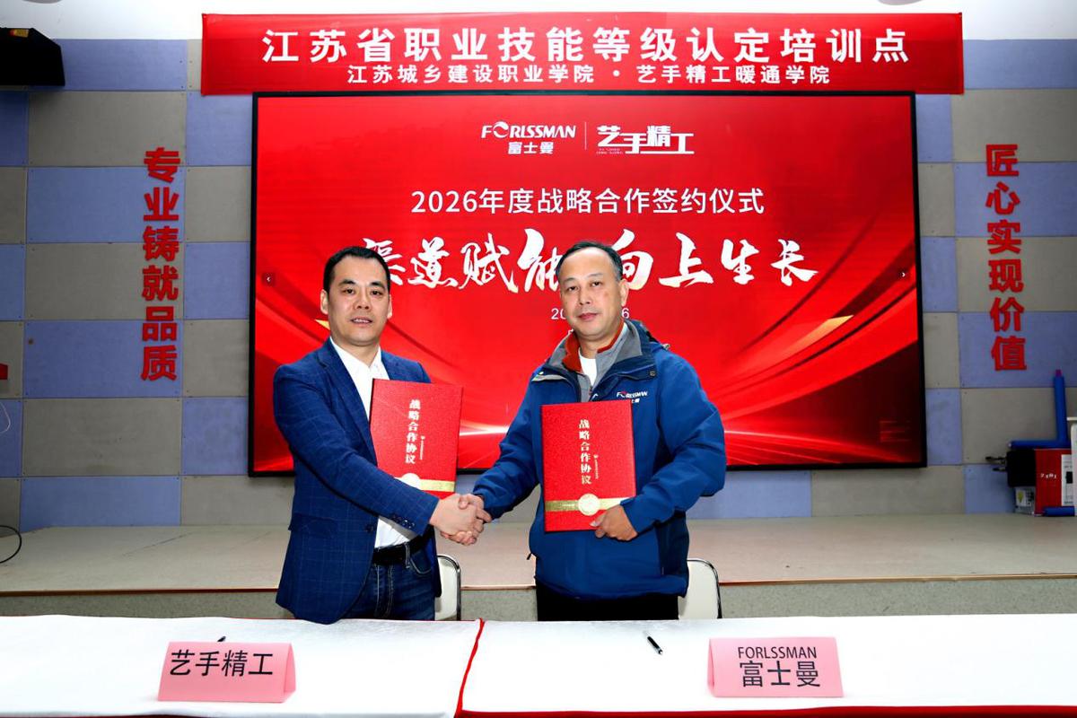 专业空气能高端品牌富士曼与由行业知名IP——《暖通校长》创立的专业技术服务品牌艺手精工共同签署年度战略合作协议,双方未来将围绕空气能安装服务标准化体系建设、渠道专业培训与品牌整合营销传播等展开全方位的深度合作。