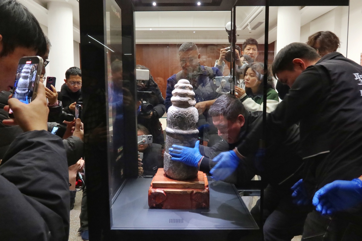 中国日报11月27日电(记者 姜东)2025年11月27日,从敦煌远道而来的38件珍贵文物在北京展览馆开箱亮相,其中包括沙山石塔和敦煌牍两件国家一级文物。据了解,这批文物将在“如是莫高”敦煌艺术大展第二季中与观众见面。