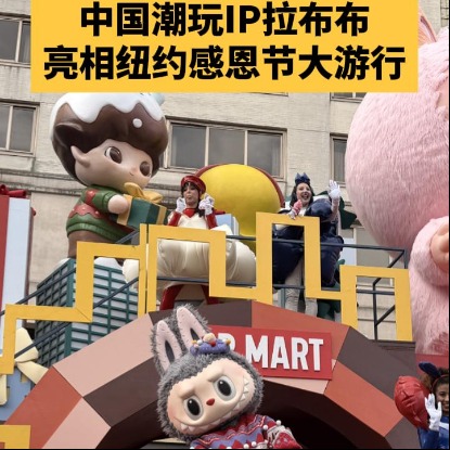 当地时间11月27日,来自中国的潮玩LABUBU(拉布布)首次亮相第99届梅西百货感恩节大游行,在美国纽约与百万观众互动。LABUBU花车以其独特可爱的造型吸引了沿途大批观众驻足拍照、欢呼互动。